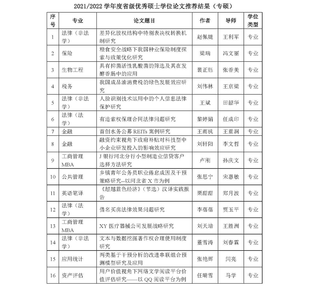 关于2021/2022学年度省级优秀硕士学位论文推荐结果的公示