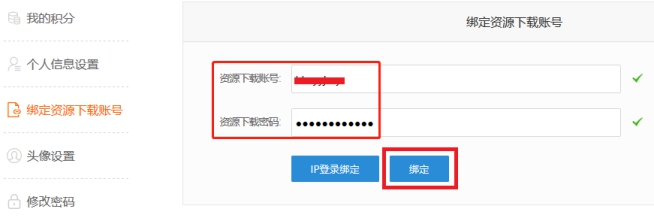 1)电脑端:在登录网址x.cnki.net后,点击右上角的个人头像,进入个人中心-绑定资源下载账号,手动填写机构资源下载账号和密码,具体见下表。