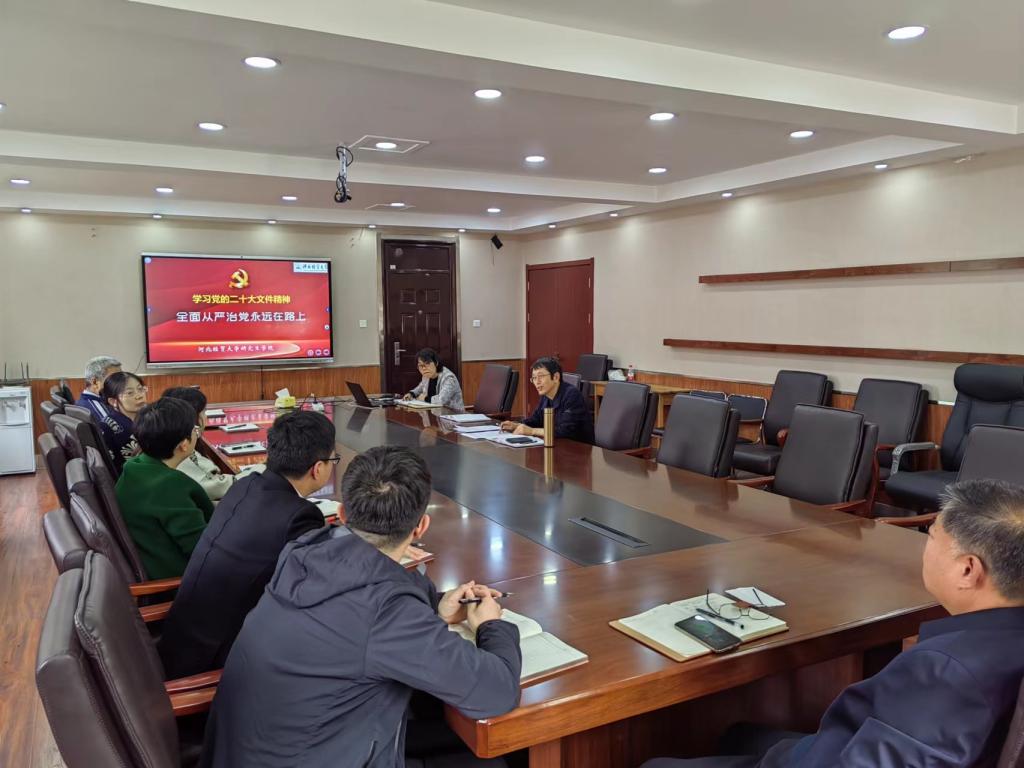 为落实学校全面从严治党工作会议精神和学校主题教育动员大会会议精神,4月17日下午,bat365中文官方网站召开了从严治党专题会议。学院党支部书记韩瑞军传达了学校2023年全面从严治党工作会议精神,学院党支部纪检委员、副院长杨雪美为学院全体同志讲授了《从严治党永远在路上》专题党课。