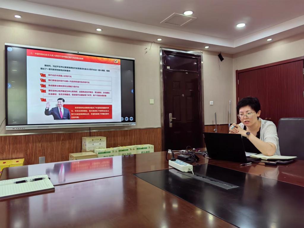 梁倩围绕“中国式现代化的历史演进、理论创新与科学内涵”,从“适合中国国情的社会主义建设道路的探索与‘四个现代化’理论的提出”“中国特色社会主义的实践与‘中国式的现代化’概念的提出”“中国特色社会主义进入新时代与中国式现代化的理论创新”“深刻理解中国式现代化的科学内涵”四个方面对这一问题进行了阐述,与支部同志共同回顾了新中国成立到改革开放前夕,中国共产党不断探索适合中国国情的社会主义建设道路的光辉历程;梳理了党的十一届三中全会以后开启中国特色社会主义的伟大实践,中国式现代化在理论和实践上取得的重大突破;阐释了中国特色社会主义进入新时代以来,以习近平同志为核心的党中央提出了一系列新思想新观点新要求,极大深化了党对社会主义现代化建设规律的认识,党的二十大报告对中国式现代化的系统论述,标志着中国式现代化理论的全面形成和完善。