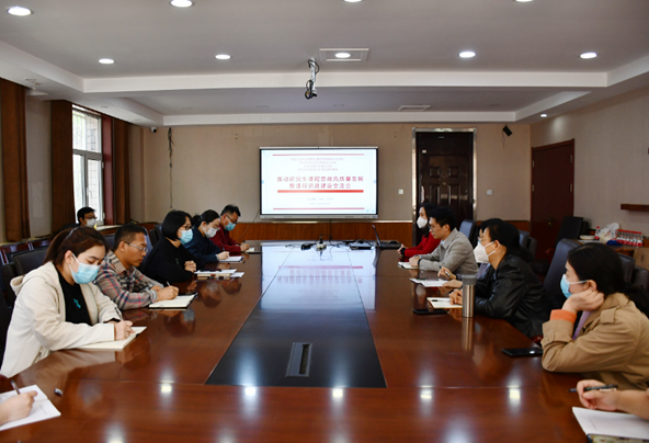 4月26日下午,bat365官网在二办bat365中文官方网站会议室举办研究生课程思政高质量发展暨课程思政建设交流会。本次活动邀请金融学院李妍副教授、王叶军博士作交流分享。bat365中文官方网站副院长杨雪美主持,来自公共管理学院、法学院、商学院、财政税务学院、文化与传播学院等多所学院教师参加了本次活动。